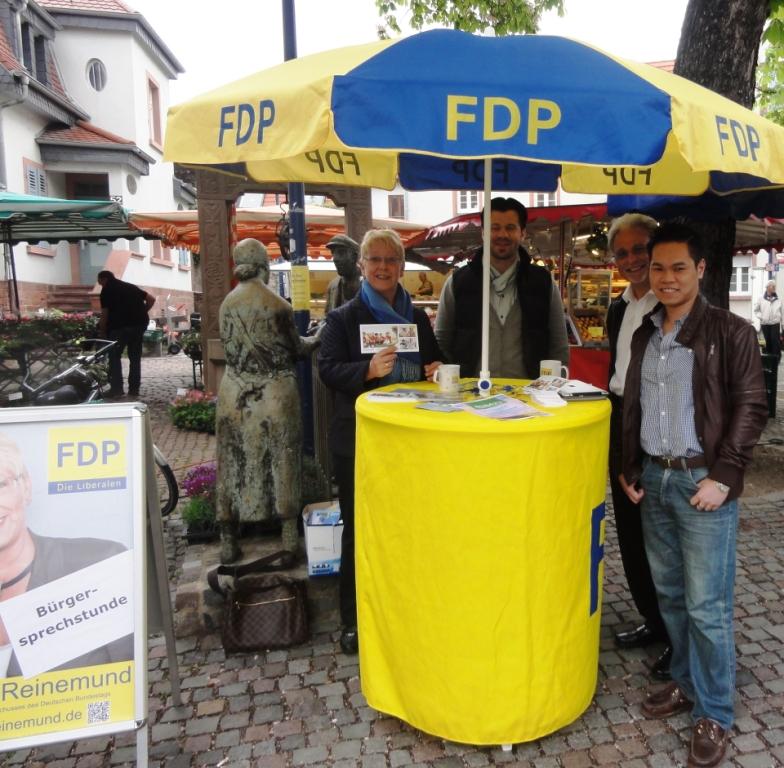 „Die Bundesgartenschau war das zentrale Thema“, fasst die FDP-Bundestagsabgeordnete Dr. Birgit Reinemund ihre Bürgersprechstunde auf dem Marktplatz von Feudenheim kurz zusammen. „Egal ob Gegner oder Anhänger, alle fanden einen Bürgerentscheide dazu sehr gut. Nichts geht über das persönliche Gespräch“, zieht Dr. Reinemund eine zufriedene Bilanz.