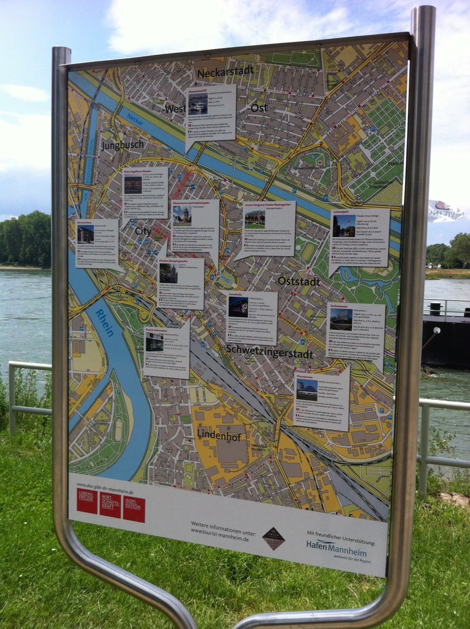 Besonders das Rheinufer ist bei den Flusskreuzfahrten stark frequentiert. Allerdings steigen viele Gäste vom Schiff direkt in den Bus und fahren nach Heidelberg. „Wir müssen den Touristen, die per Schiff bei uns ankommen, den Weg in die Mannheimer Innenstadt und zurück schmackhaft machen, bevor Mannheim nur eine Umsteigestelle auf dem Weg nach Heidelberg bleibt. Touristisch und kulturell hat Mannheim enorm viel zu bieten. Unsere Innenstadt, mit ihren hervorragenden Einkaufsmöglichkeiten, brilliert in jedem Ranking. Die jetzt aufgestellten Willkommensschilder stellen eine weitere wichtige Komponente dar“, betont die wirtschaftspolitische Sprecherin der FDP-Fraktion und Bundestagsabgeordnete Dr. Birgit Reinemund.