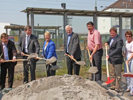Mit einem symbolischen 1. Spatenstich gab heute in Mannheim-Rheinau Eckart Fricke, Konzernbevollmächtigter der Deutschen Bahn AG für das Land Baden-Württemberg, gemeinsam mit den Bundestagsabgeordneten des Wahlkreises, Prof. Dr. Egon Jüttner, Stefan Rebmann und