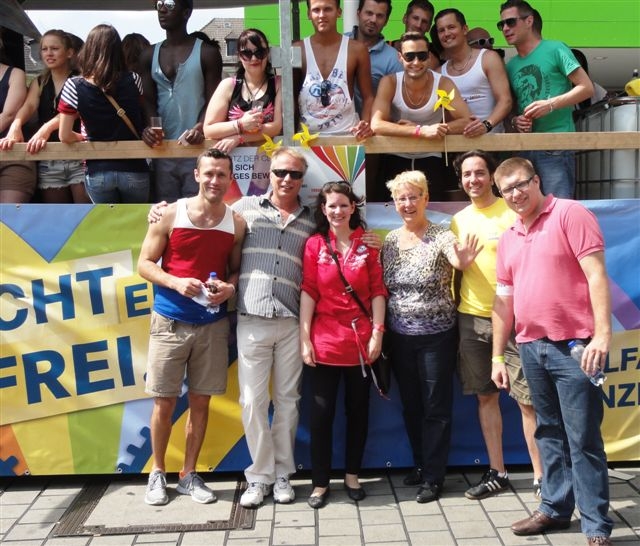 41 teilnehmende Gruppen verzeichnet die Parade – so viele wie noch nie, seit der Verein CSD Rhein-Neckar das Spektakel organisiert. So bunt der CSD ist, so unterschiedlich sind auch die Motive der Teilnehmer und Zuschauer. SPD, Grüne, FDP, Piraten und Linke beschallen die Straßen mit tanzbarer Musik und bringen dabei gleich noch ihre politischen Botschaften unters Volk. Mal geht es laut zu, mal eher leise. Die einen haben an diesem Tag offensichtlich einfach Lust, zu tanzen oder ein Foto von den Travestiekünstlern zu schießen, die anderen haben ein ganz ernstes Anliegen. Etwa die Mitglieder von „ILSE“, der „Initiative lesbischer und schwuler Eltern“, die als Teil der Parade durch die Innenstadt zieht, auf Musik verzichtet, dafür Flyer verteilt. Wieder andere haben den CSD offenbar auch für Werbezwecke entdeckt. Die Möbelhauskette Ikea zum Beispiel ist die Nummer zwei der Parade. Junge, gut aussehende Menschen verteilen Blumen und verkünden den Slogan „Leb wie du willst“.