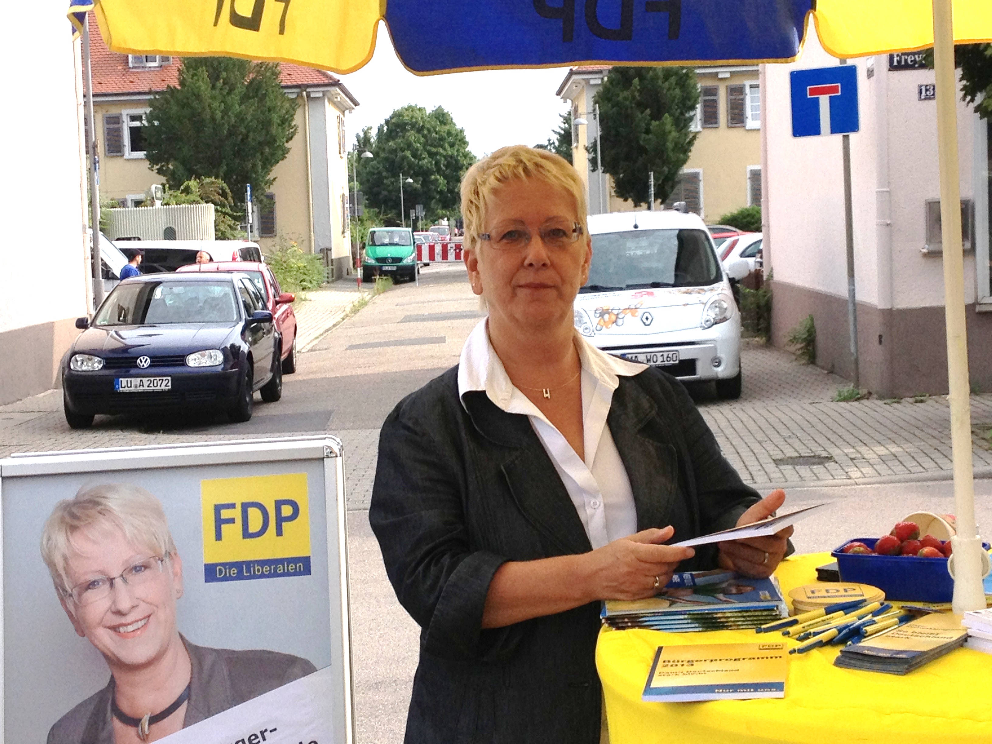 Schwerpunkt der Gespräche am Stand waren jedoch eine ganze Fülle anderer Themen. Ganz oben auf der Liste stand wie bei den meisten Bürgersprechstunden in den Stadtteilen die Entwicklung des „Grünzuges Nord“ im Zusammenhang mit der Abstimmung über eine Bundesgartenschau in Mannheim. Die FDP-Politikerin Reinemund freute sich über die breite Zustimmung zur FDP-Position: „Auch hier in der Gartenstadt will man keine BUGA. Der marode Zustand der Infrastruktur lässt ein weiteres Großprojekt einfach nicht zu. Alleine bei den Schulgebäuden hat Mannheim einen Sanierungsrückstand von 300 Millionen Euro und viele Straßen sind mit unzähligen Schlaglöchern gesäumt. Bei diesen Themen muss die Stadt endlich Abhilfe schaffen. Viele meiner Gesprächspartner sprachen sich klar für die Entwicklung eines Grünzuges aus, allerdings nicht durch eine schuldenfinanzierte BUGA und nicht auf Kosten der Bildung unserer Kinder.“